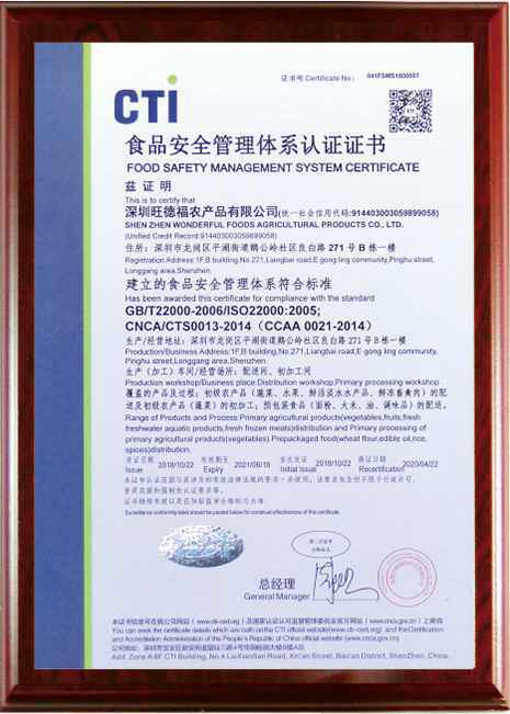 我们食采用ISO9001质量体系认证与ISO22000食品安全体系标准作业标准,亲自到原产地进行实地调研和评估。